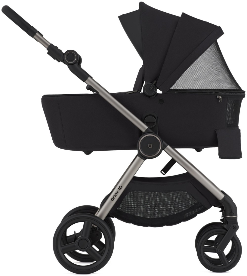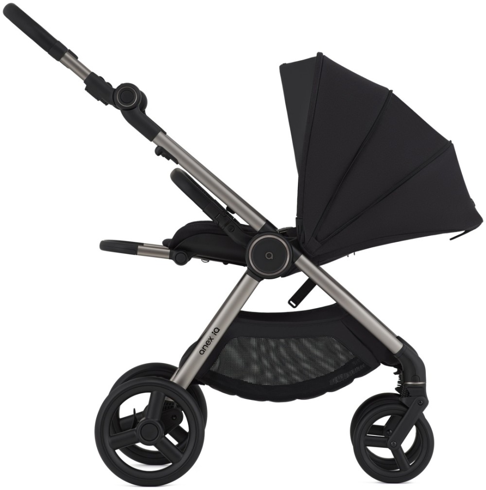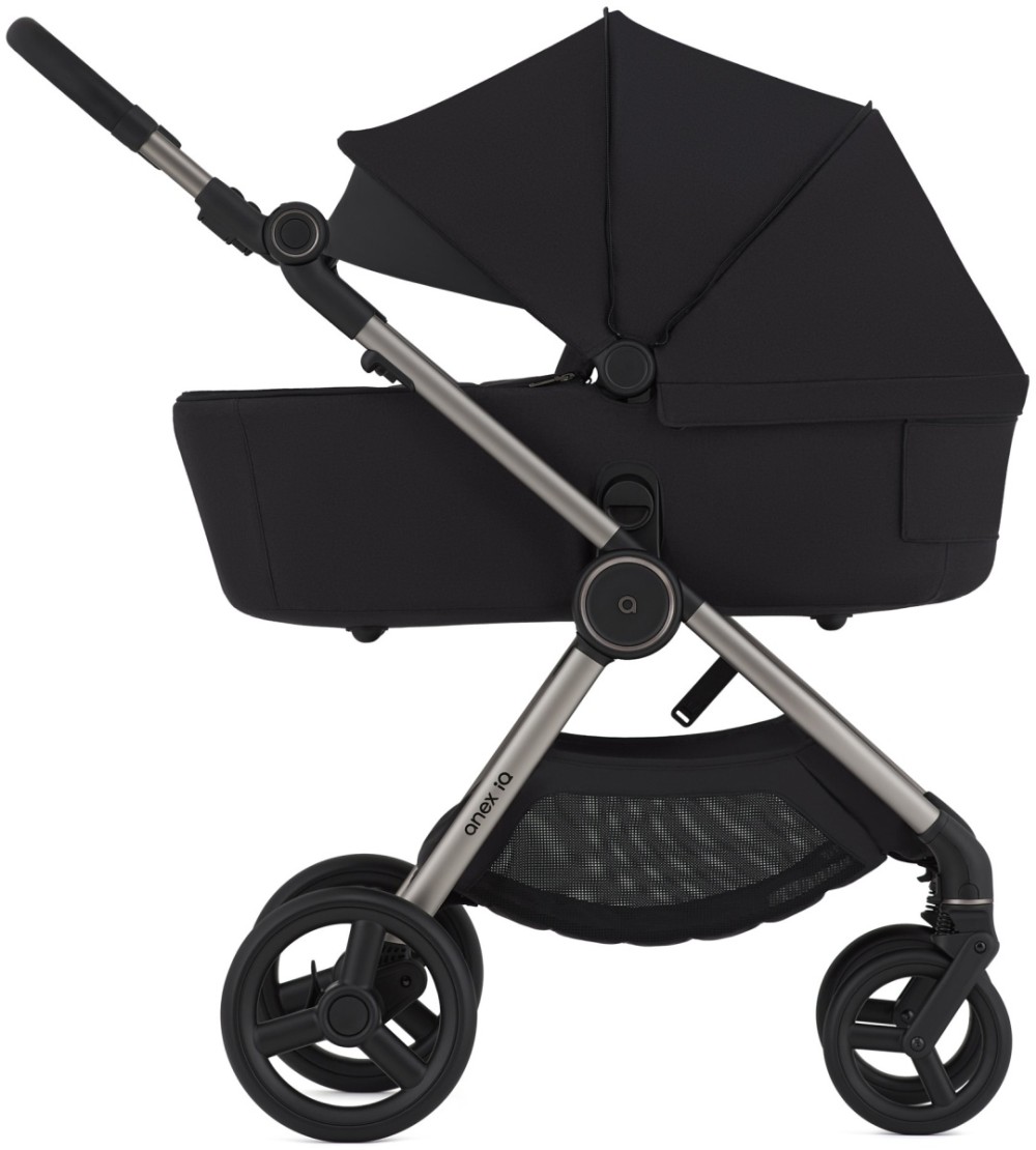 Одна рама= три коляски. IQ Premium предлагает люльку, прогулочный блок и багги для путешествий — всё в одном. Anex IQ, созданна для жизни. Лёгкая в любой конфигурации, эта коляска позволяет менять, комбинировать и трансформировать её в соответствии с вашими потребностями. Регулируемая и прочная. Родители могут превратить коляску IQ 2-в-1 в лёгкое багги всего за 3 минуты. Не требуется никакого оборудования – всё просто с помощью нескольких щелчков. Вместительная корзина, рассчитанная до 5 кг. Чтобы вашему малышу было комфортно и уютно, IQ имеет комплексную систему вентиляции, которая обеспечивает проветривание во всех необходимых местах – от капюшона люльки до подножки и капюшона сиденья. Не беспокойтесь о дожде или солнце — ткань коляски имеет водоотталкивающее покрытие >80, что обеспечивает комфорт для вашего ребенка, а также технологию защиты от ультрафиолетового излучения UV 50+, которая надежно защищает его от прямых солнечных лучей. Реверсивное сиденье - Благодаря реверсивному сидению прогулочный блок легко адаптируется к возрасту и потребностям ребенка: для новорожденных — лицом к родителям (спинка сиденья полностью опускается для горизонтального положения), для маленьких исследователей — лицом к миру.