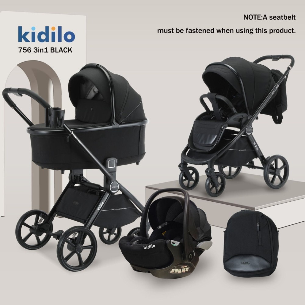 Kidilo 756 3в1 — универсальная детская коляска премиального дизайна, которая включает всё необходимое с рождения до 3–4 лет: люльку, прогулочный блок и автокресло. Идеально подходит для города и ежедневных прогулок.