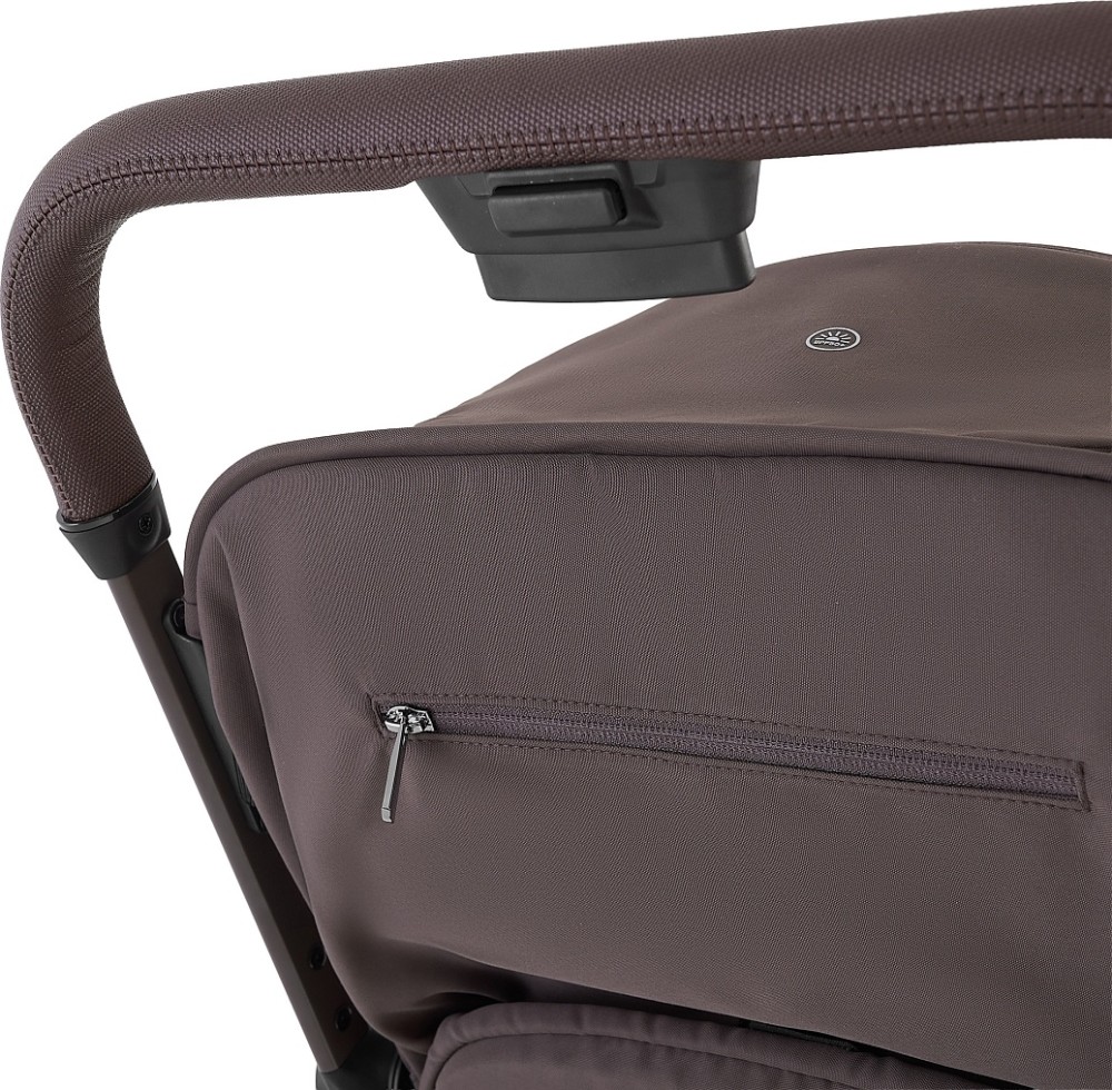 Ручка коляски покрыта премиальной экокожей и имеет универсальный хват, подходящий для родителей любого роста.