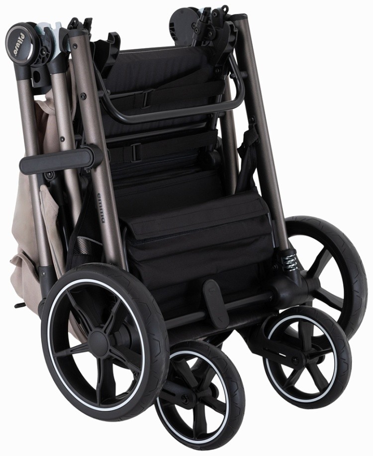 При складывании коляска блокируется от случайного раскладывания и сохраняет вертикальное положение.