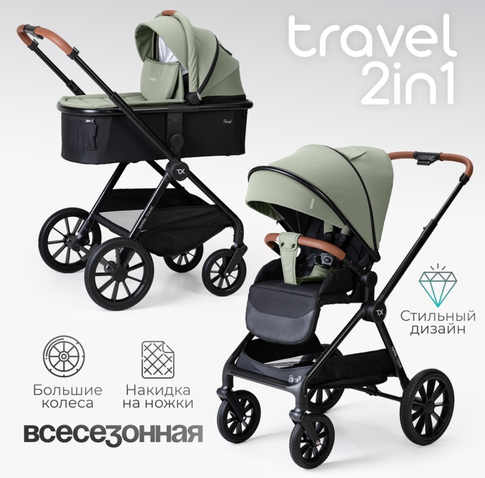 Коляска универсальная 2 в 1 TOMIX Travel Green купить в Астане в интернет-магазине KinderWood. Отличное качество, выгодные цены и быстрая доставка по всем городам Казахстана.