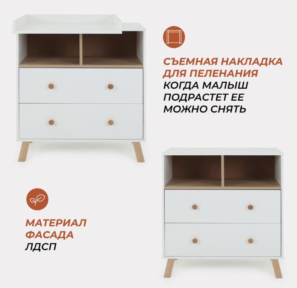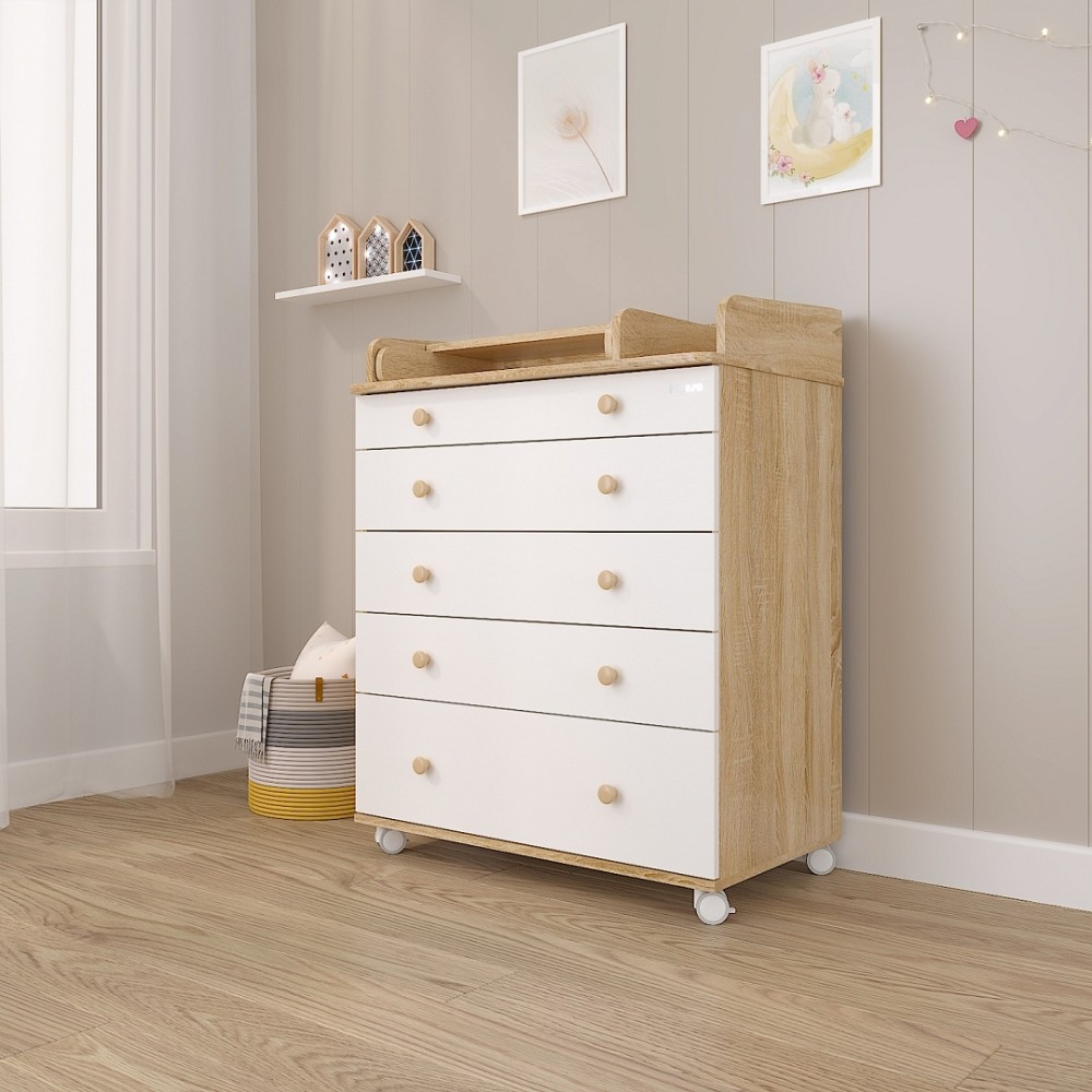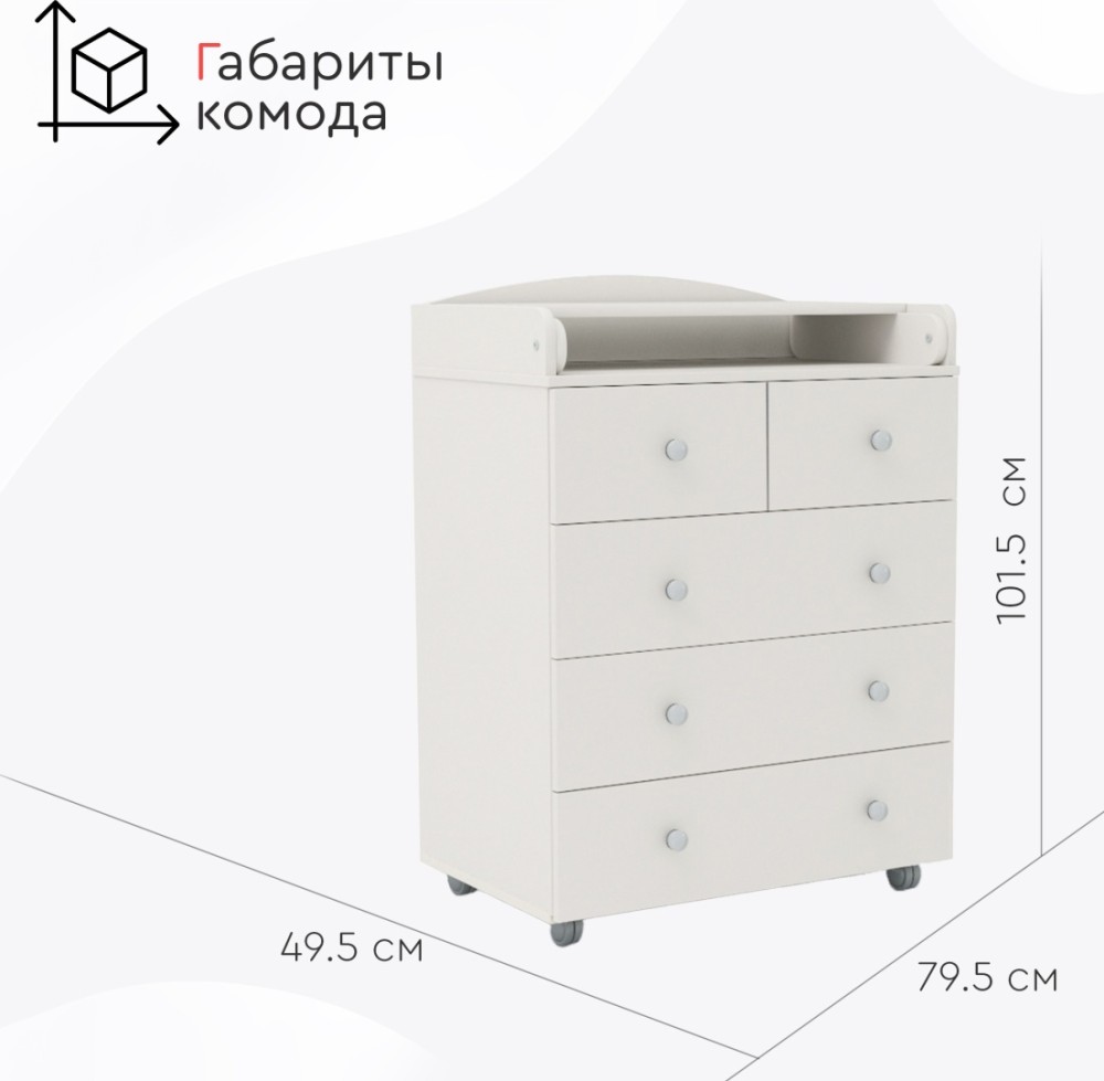 Комод с раскладным пеленальным столиком и 5-ю ящиками.