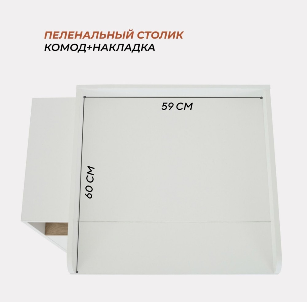 Пеленальный столик с простым и надежным, скрытым механизмом раскладывания (пеленальная поверхность 52*68 см); высота столешницы 89 см;
