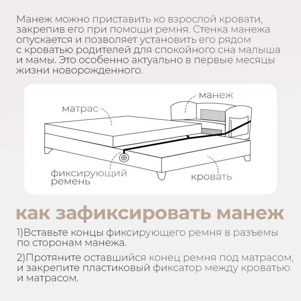 Функциональная кроватка-манеж Tomix Born Plus – идеальный вариант для дома, дачи и путешествий! Модель имеет 2 уровня ложа с жестким основанием, на которое можно положить стандартный матрас размером 120х60 см и использовать манеж как полноценную детскую кроватку. Мягкие бортики защищают малыша, а сетка со специальным плетением позволяет родителям следить за крохой. Манеж детский напольный может превращаться в приставную кроватку для новорожденных. Для этого предусмотрен механизм опускания боковой стенки. Благодаря этому можно придвинуть кроватку ко взрослой кровати, зафиксировав ее с помощью ремня, который идет в комплекте. Для укачивания младенцев предусмотрена встроенная система качания, которая легко убирается при необходимости. Манеж имеет боковой лаз, закрывающийся на молнию. Благодаря прорезиненным колесам с фиксаторами, манеж легко передвигается по дому, не оставляя следов. В комплекте с кроваткой идет пеленальная доска, которая крепится на бортики и облегчает процесс ухода за новорожденным, а музыкальный мобиль с игрушками и приятной мелодией поможет успокоить и увлечь малыша. Удобный карман на боковой стенке позволяет хранить все необходимые вещи, которые должны быть под рукой. Складная конструкция и удобная сумка для хранения и перевозки облегчит путешествие с малышом. Размер манежа (ДхШхВ), см: 125х65х75 Спальное ложе, см: 120х60