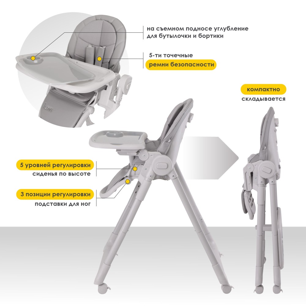 iLovi Frutti Sage - высокий cтульчик для кормления, который делает обеденное время малыша легким и удобным. Легкий и компактный дизайн позволяет сидеть вашему ребенку близко к столу. Съемный и легко моющийся двойной обеденный столик, который действительно практичен и полезен. После складывания он занимает очень мало места и легко переносится.
