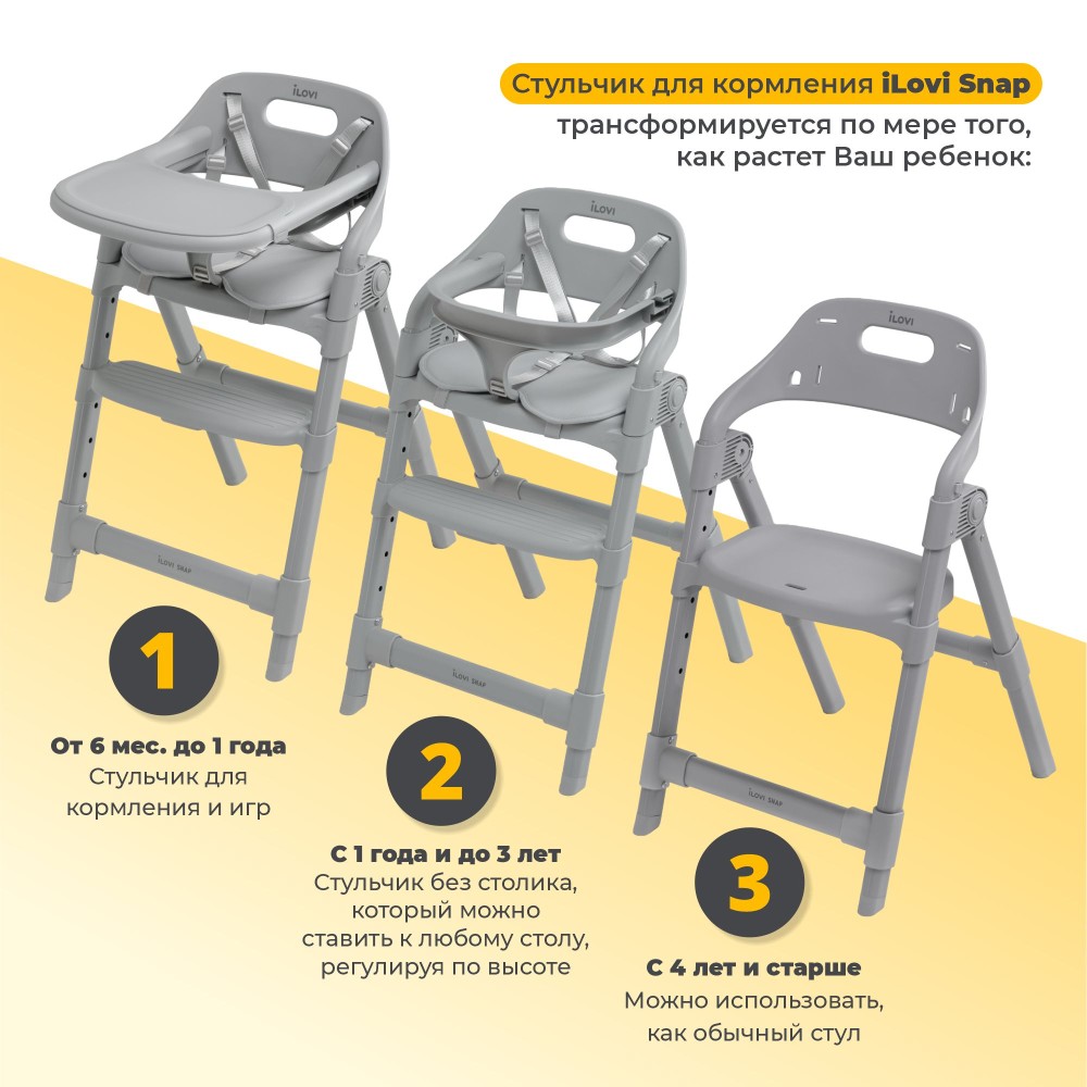 Стульчик для кормления iLovi Snap Light Grey купить в Астане в интернет-магазине KinderWood. Отличное качество, выгодные цены и быстрая доставка по всем городам Казахстана.