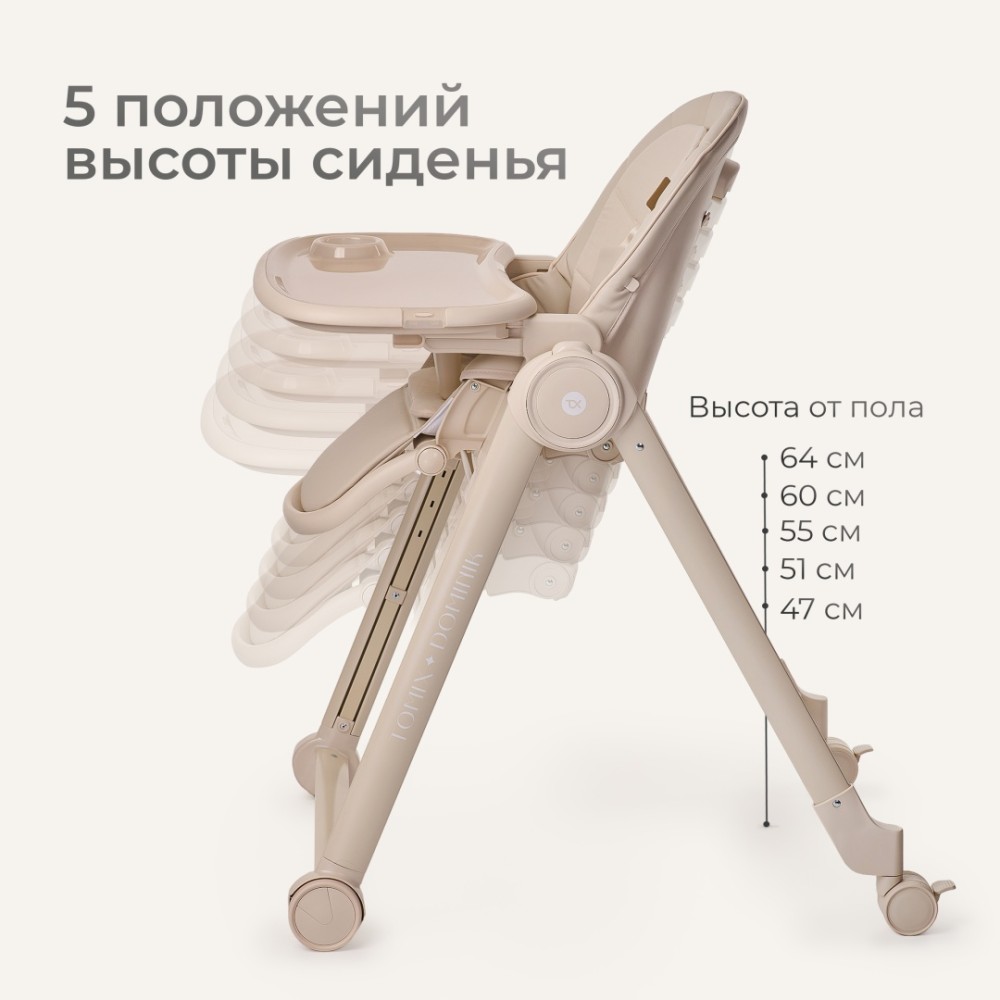 Детский стульчик Tomix Dominik — это удобное и безопасное решение для кормления и отдыха малыша. Он оснащён задними поворотными колёсами, которые обеспечивают лёгкое перемещение и устойчивость во время использования. Съёмный столик регулируется по глубине в трёх положениях, что позволяет подобрать оптимальное расстояние от спинки до подноса — от 23 до 30 см.