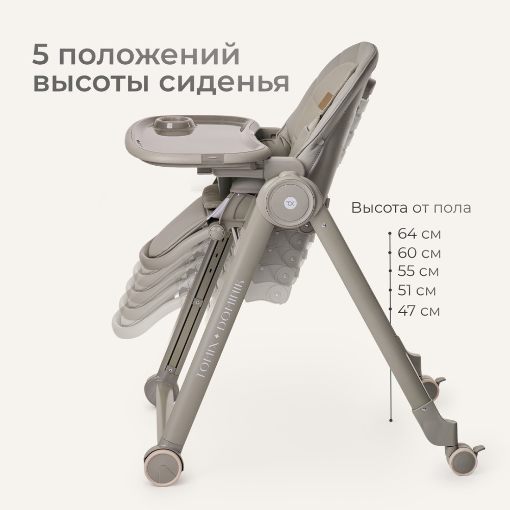 Детский стульчик Tomix Dominik — это удобное и безопасное решение для кормления и отдыха малыша. Он оснащён задними поворотными колёсами, которые обеспечивают лёгкое перемещение и устойчивость во время использования. Съёмный столик регулируется по глубине в трёх положениях, что позволяет подобрать оптимальное расстояние от спинки до подноса — от 23 до 30 см.