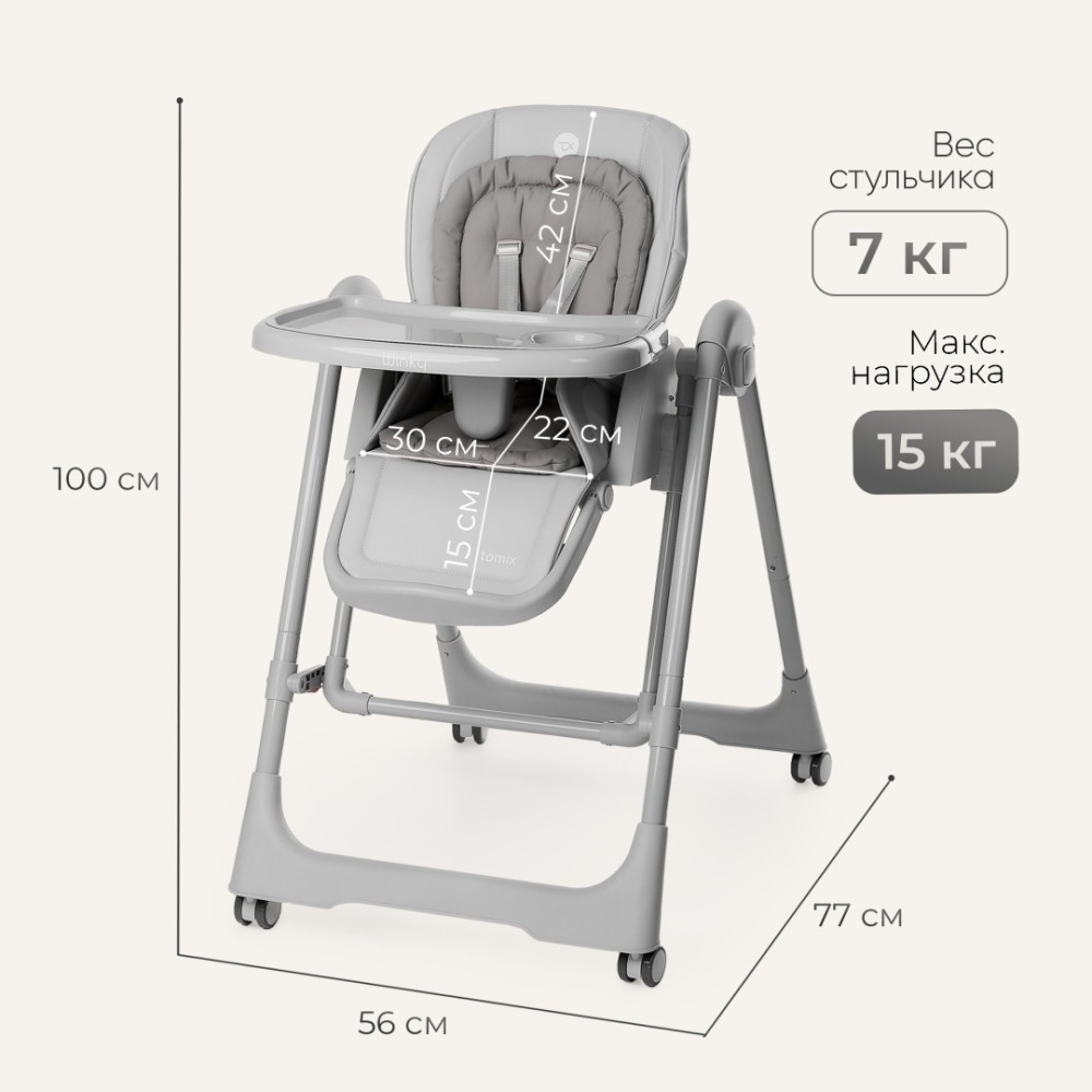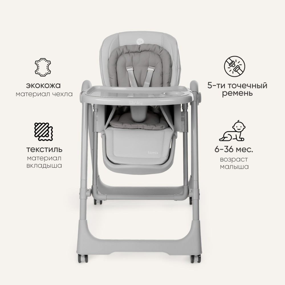 Tomix “Winky” объединяет функциональность, мобильность и комфорт, становясь незаменимым помощником в ежедневном уходе за ребёнком.
